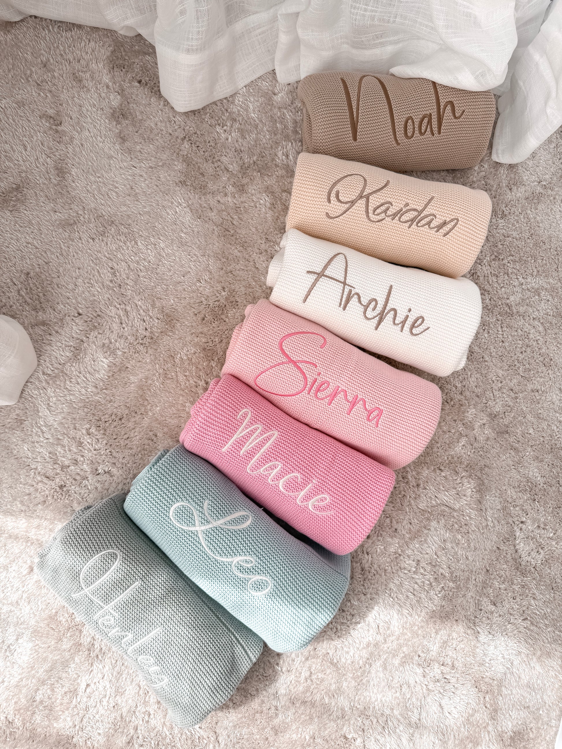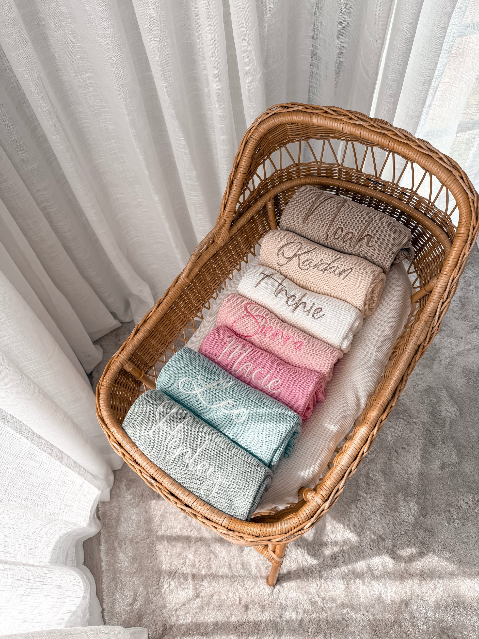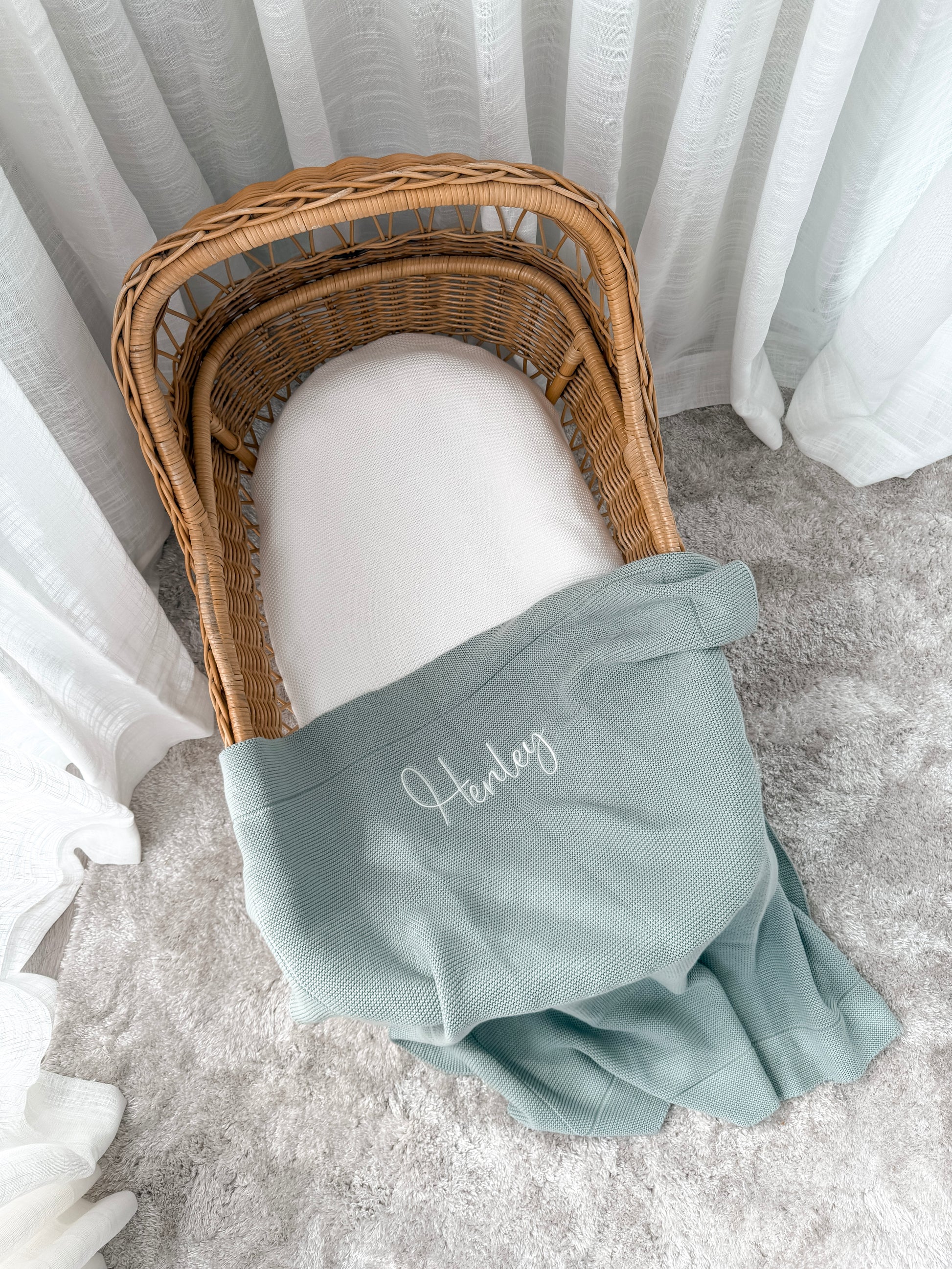 A soft and timeless knitted blanket, perfect for keeping your little one cozy and comfortable.