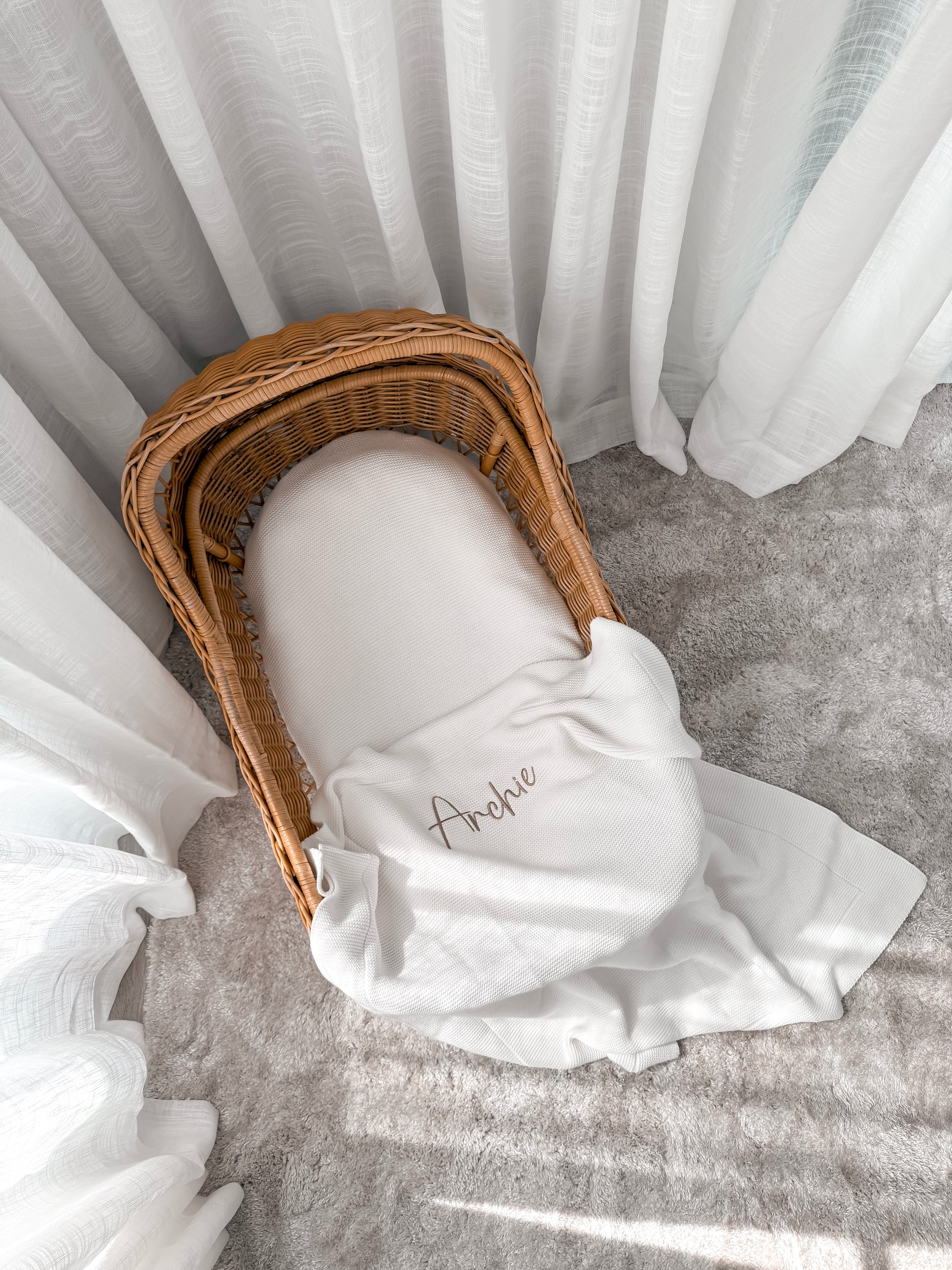 A soft and timeless knitted blanket, perfect for keeping your little one cozy and comfortable.