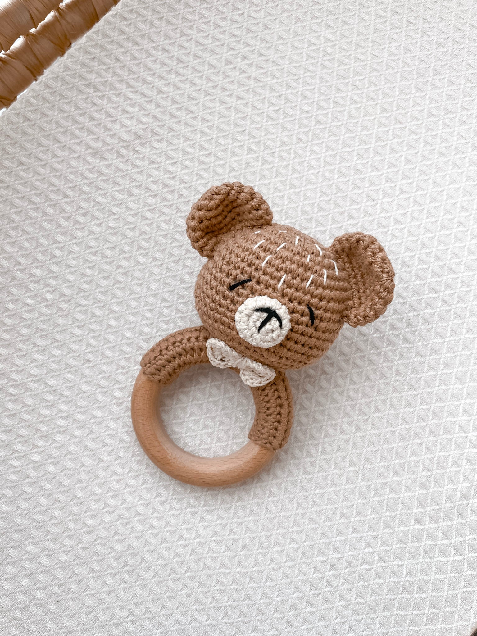 A sweet and soothing companion for tiny hands. Our Crochet Teddy Bear Rattle is lovingly handmade from soft cotton yarn, with gentle textures and a subtle rattle sound to engage and comfort your little one.