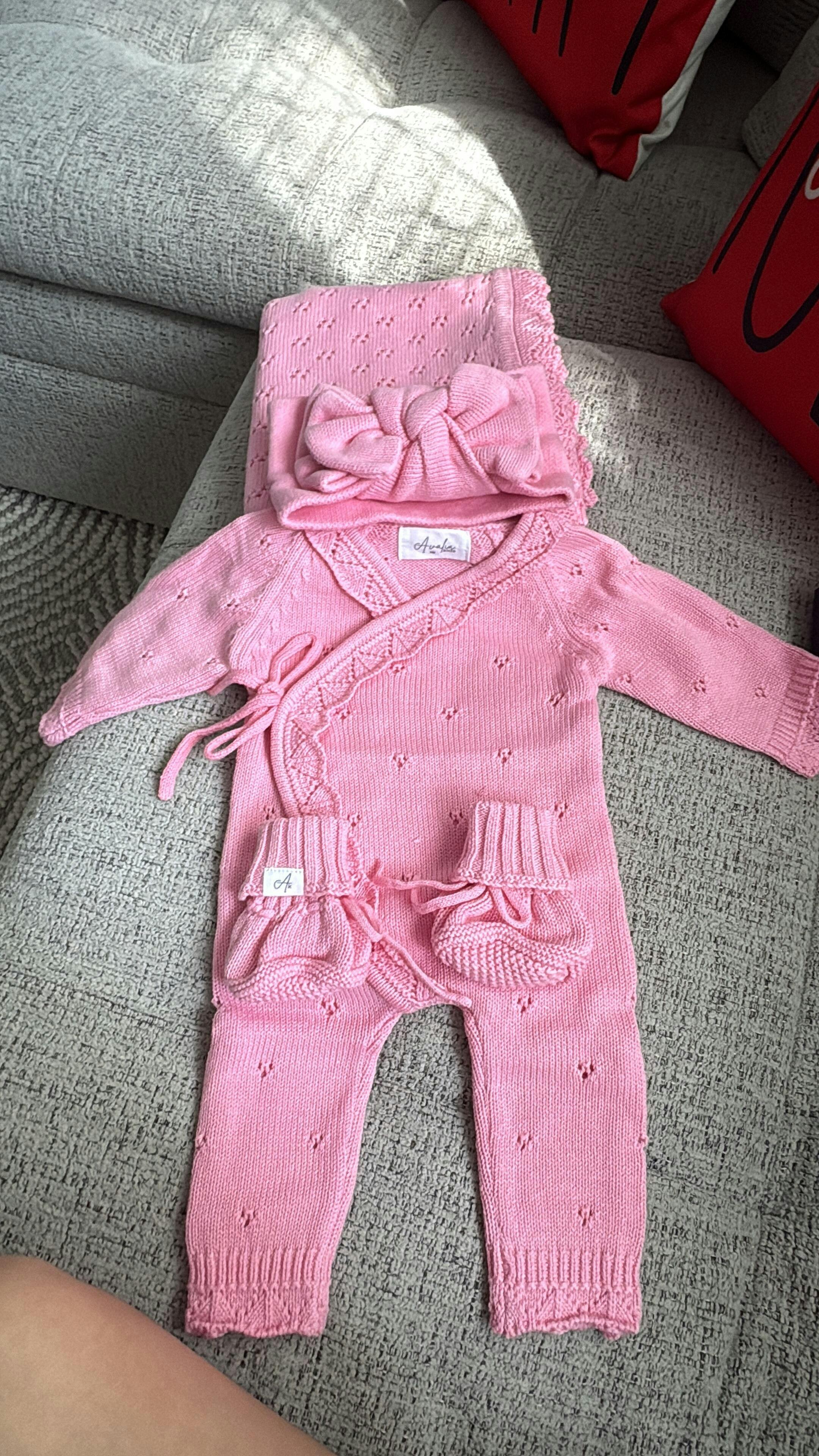 A perfect match to our Blossom topknot and pointelle blanket for a coordinated look.✓ True to size with a relaxed fit