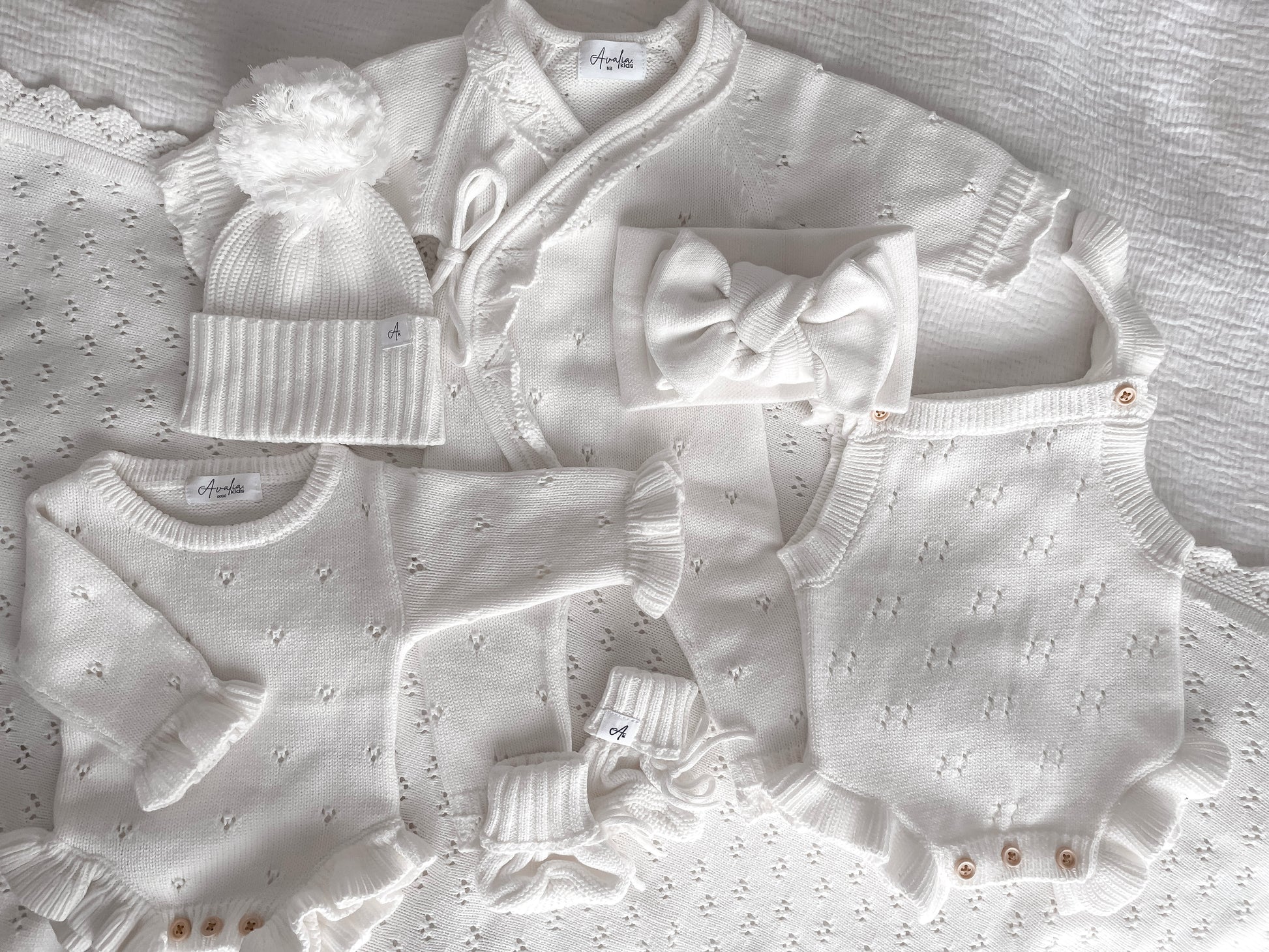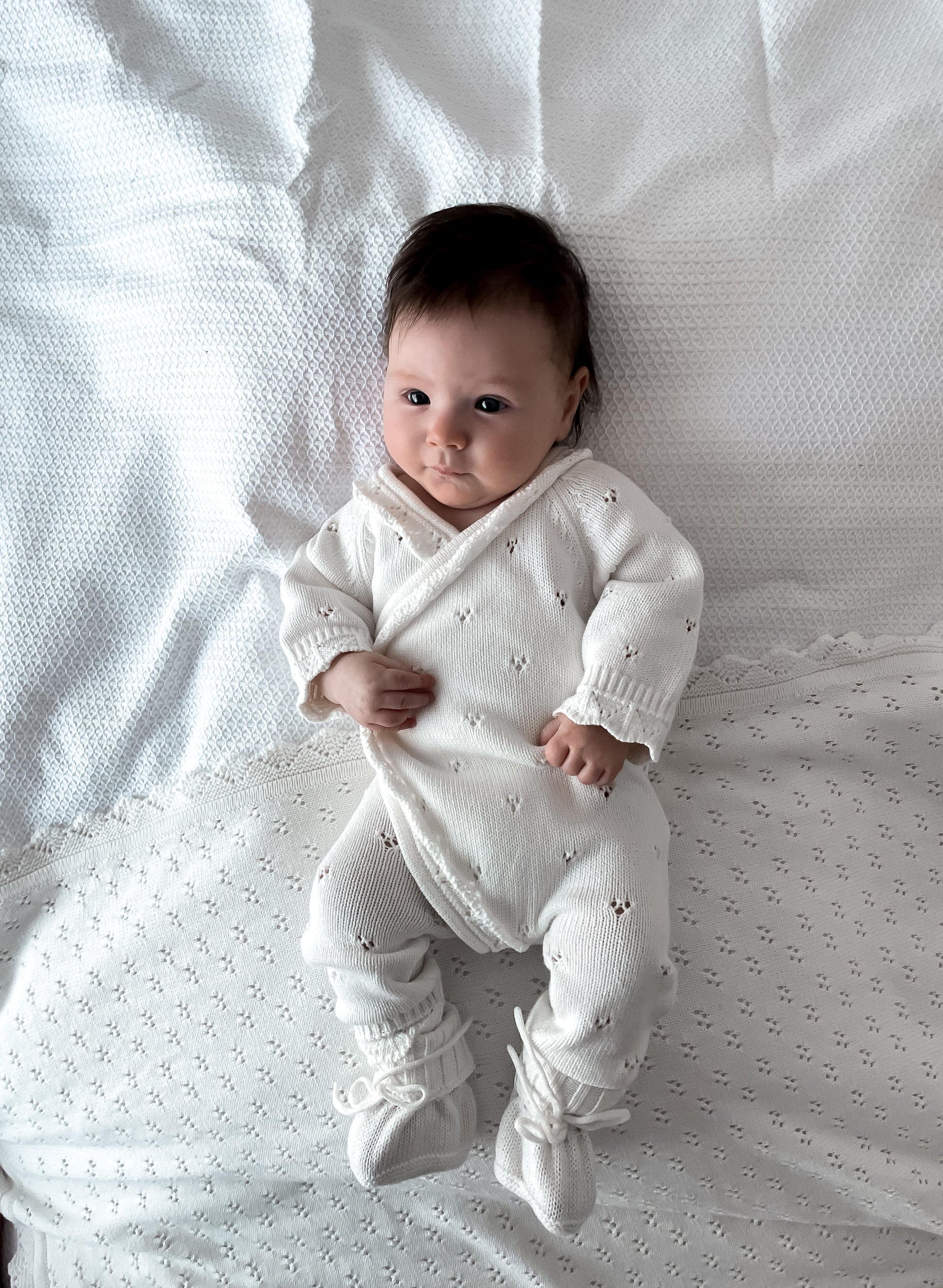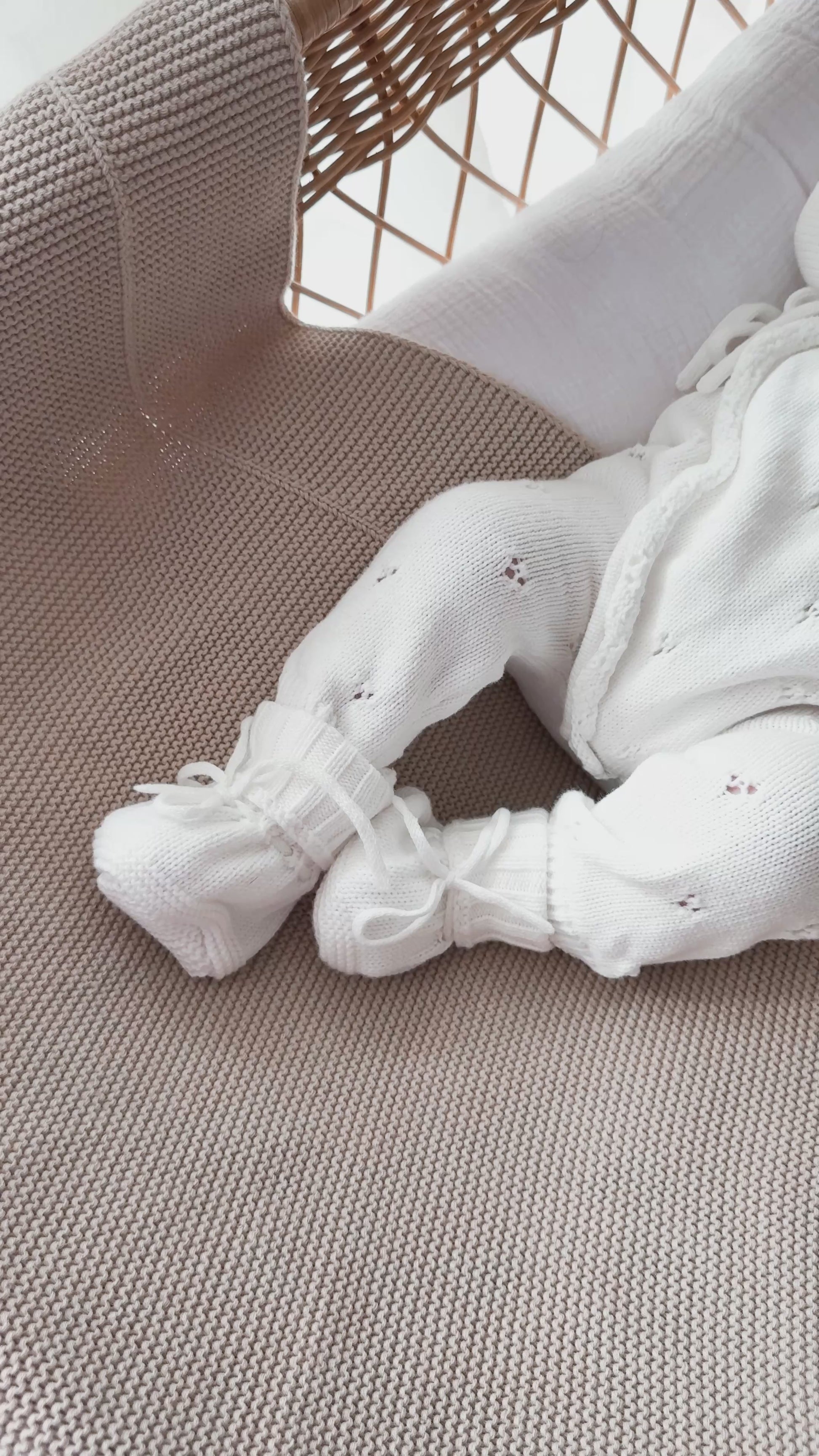 A perfect match to our Milk topknot and pointelle blanket for a coordinated look.