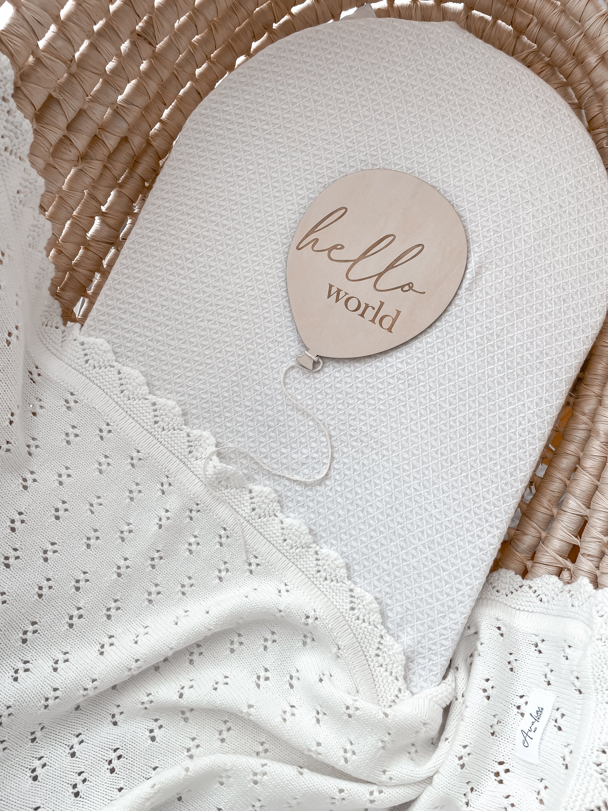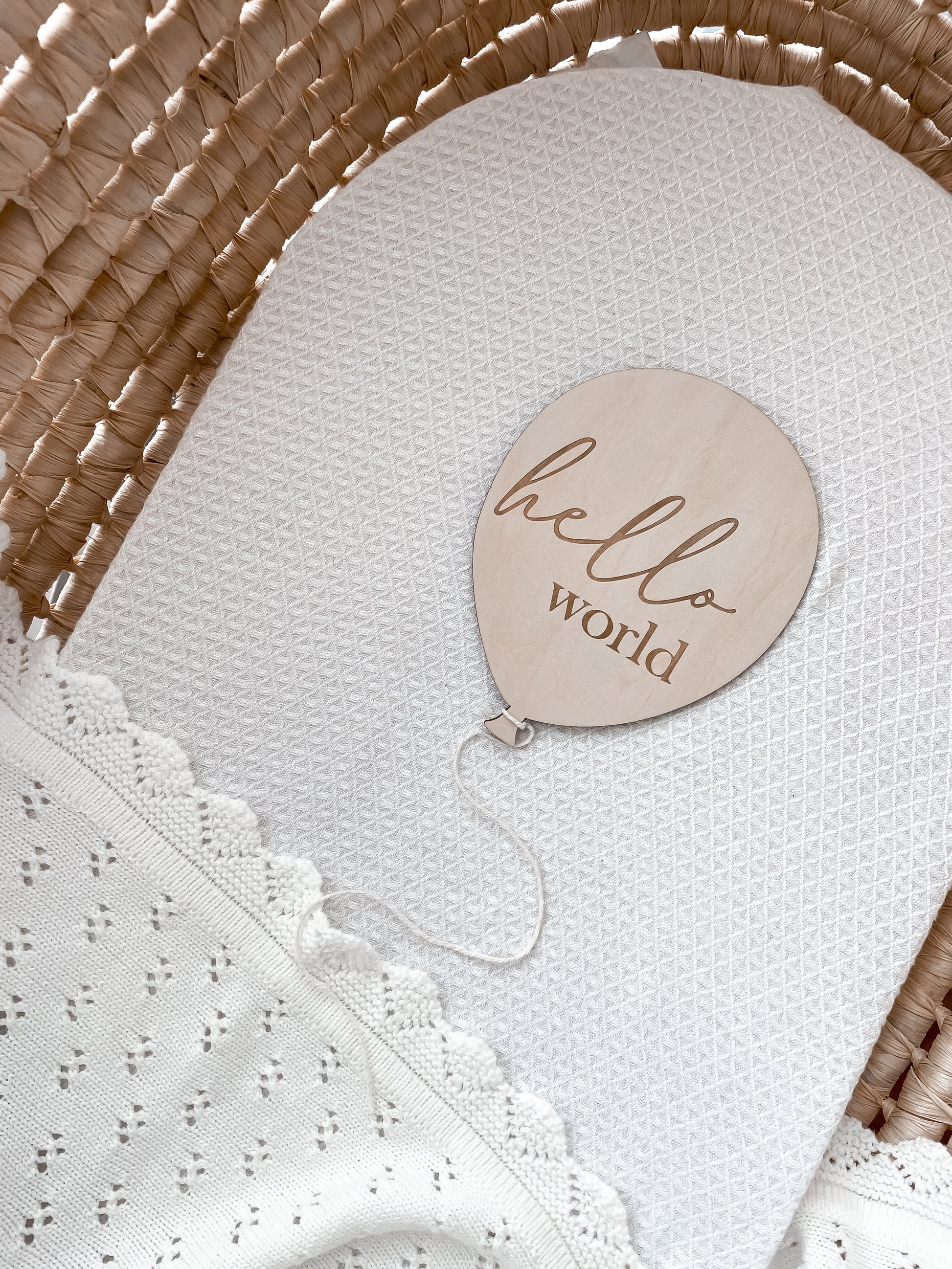 Celebrate their arrival with this charming balloon-shaped Hello World plaque — the perfect keepsake for your baby’s first photos.