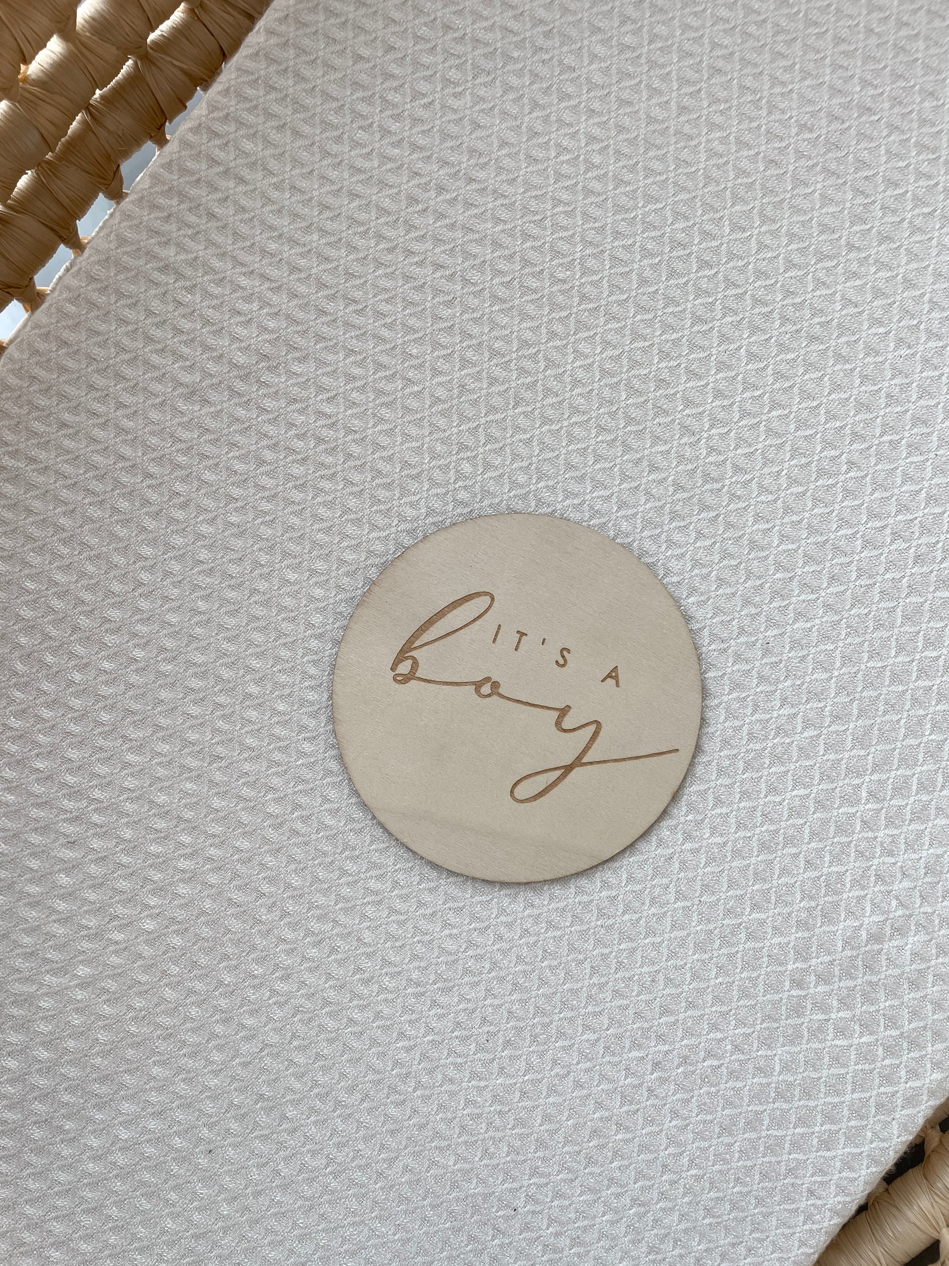 Our 10cm round Hello World – It’s a Boy plaque is the perfect photo prop for announcing your baby boy’s birth. Crafted from smooth, natural timber, it makes a beautiful addition to your first hospital photos or nursery display.