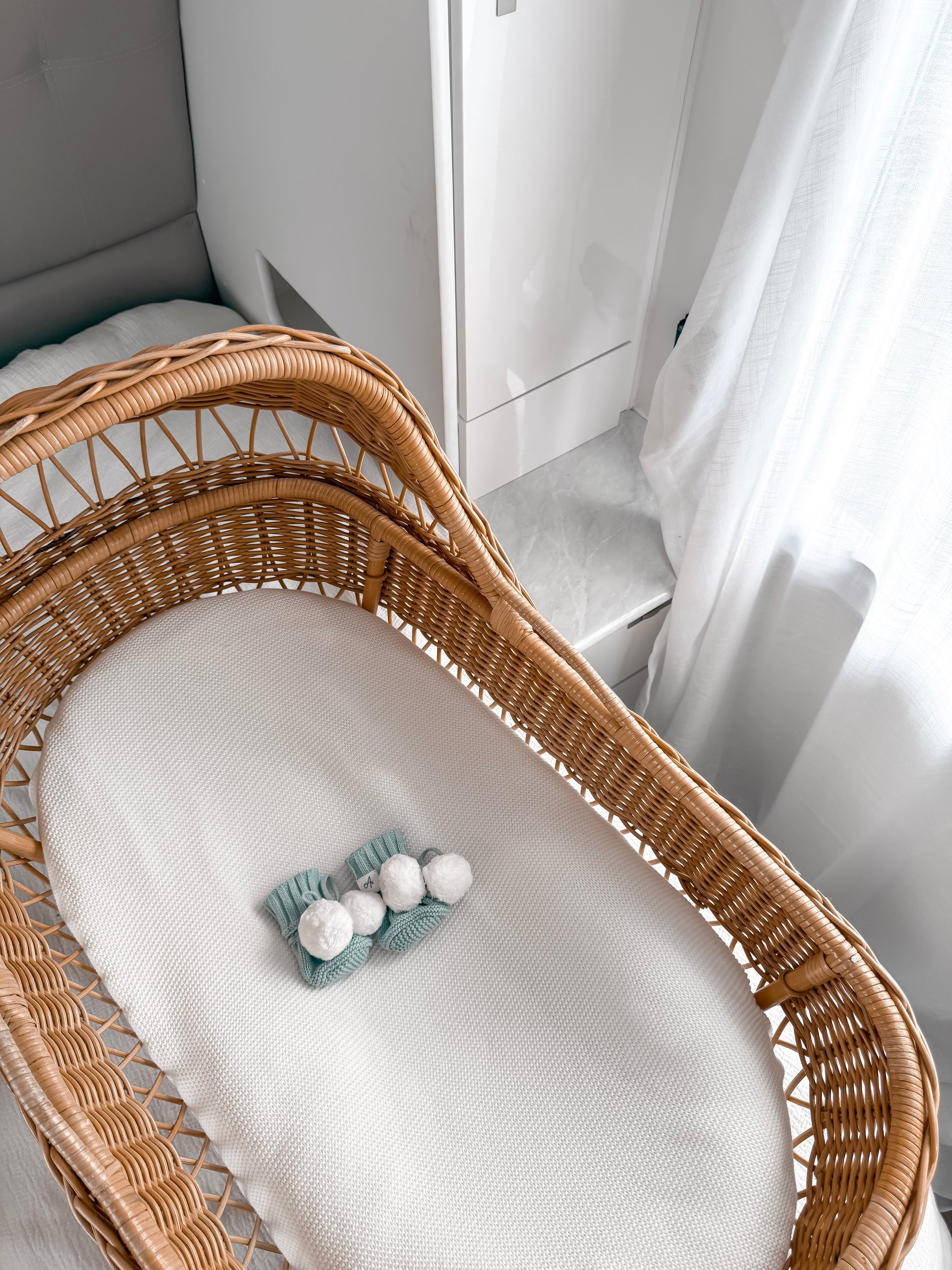 Soft, cozy booties with playful pom poms, perfect for keeping tiny feet warm and comfortable.