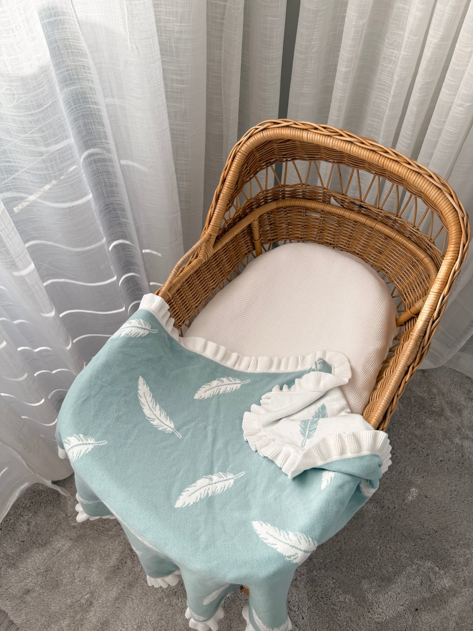 Little Feathers Reversible Blanket - Sea Mist & Milk