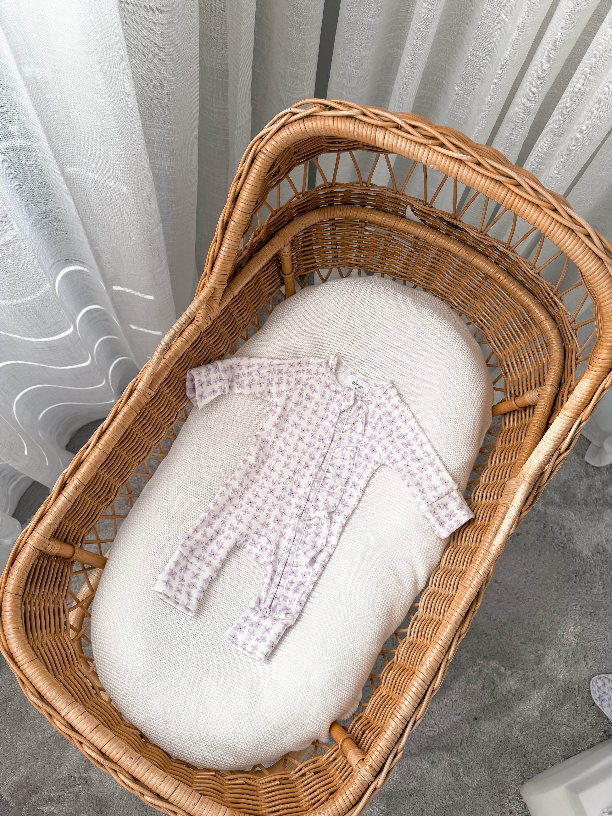 A soft and stylish zip-up romper with delicate frill details, perfect for everyday comfort and easy dressing.