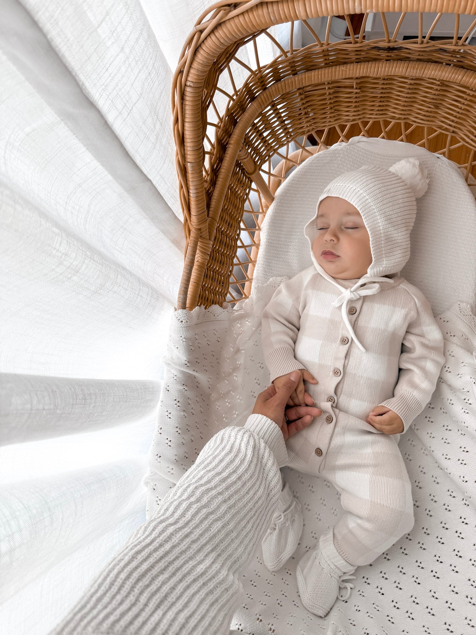 Made from 100% organic cotton, our Chai Milk Romper is soft, breathable, and gentle on delicate skin. Featuring our signature chai and milk gingham, this full-length romper is designed for both style and comfort.
