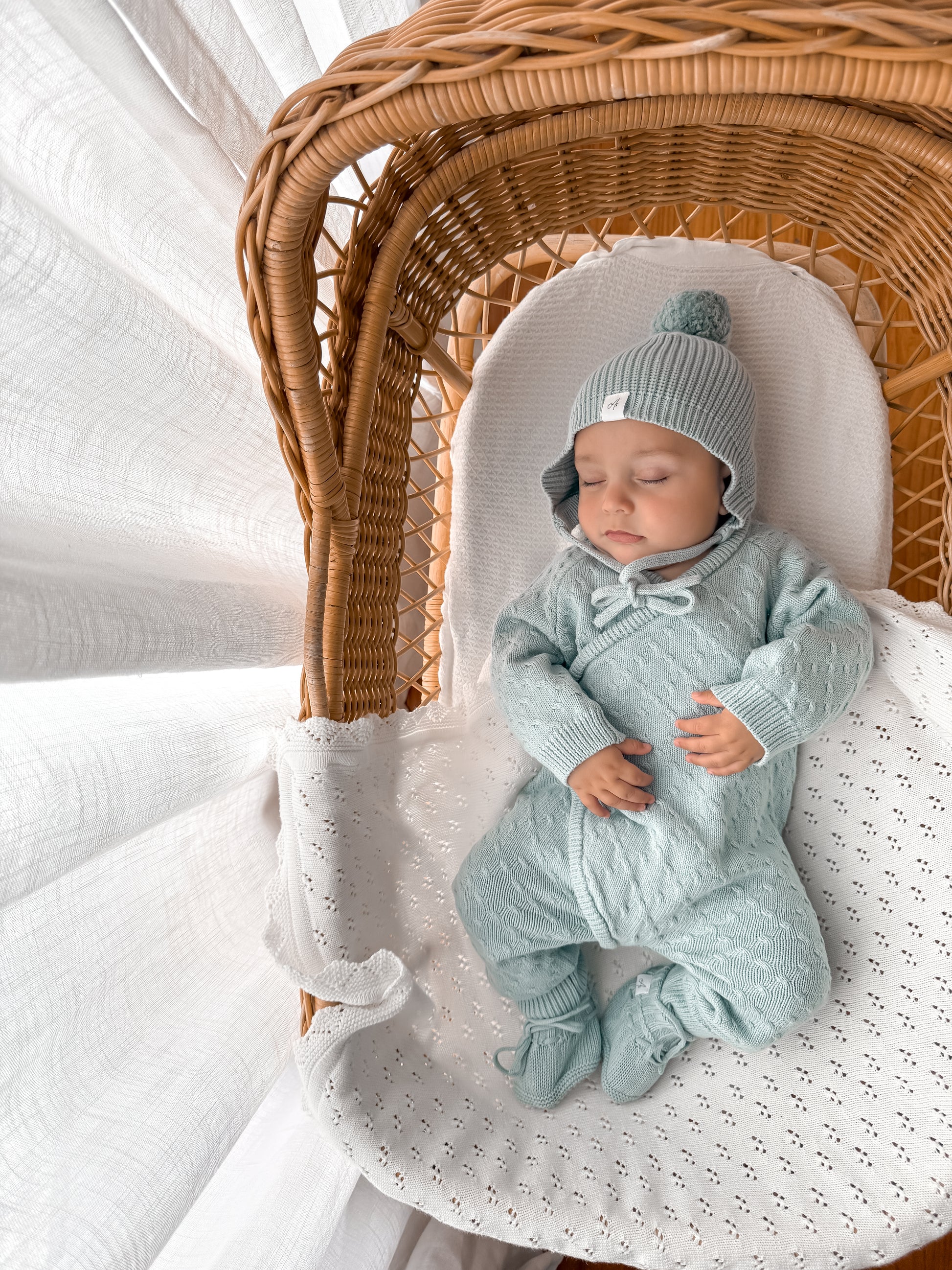 Literally the perfect blue! We bought the Haven full length romper for our son's arrival and were not disappointed. I'm usually not a fan of 'colours' on babies but this blue is just stunning.