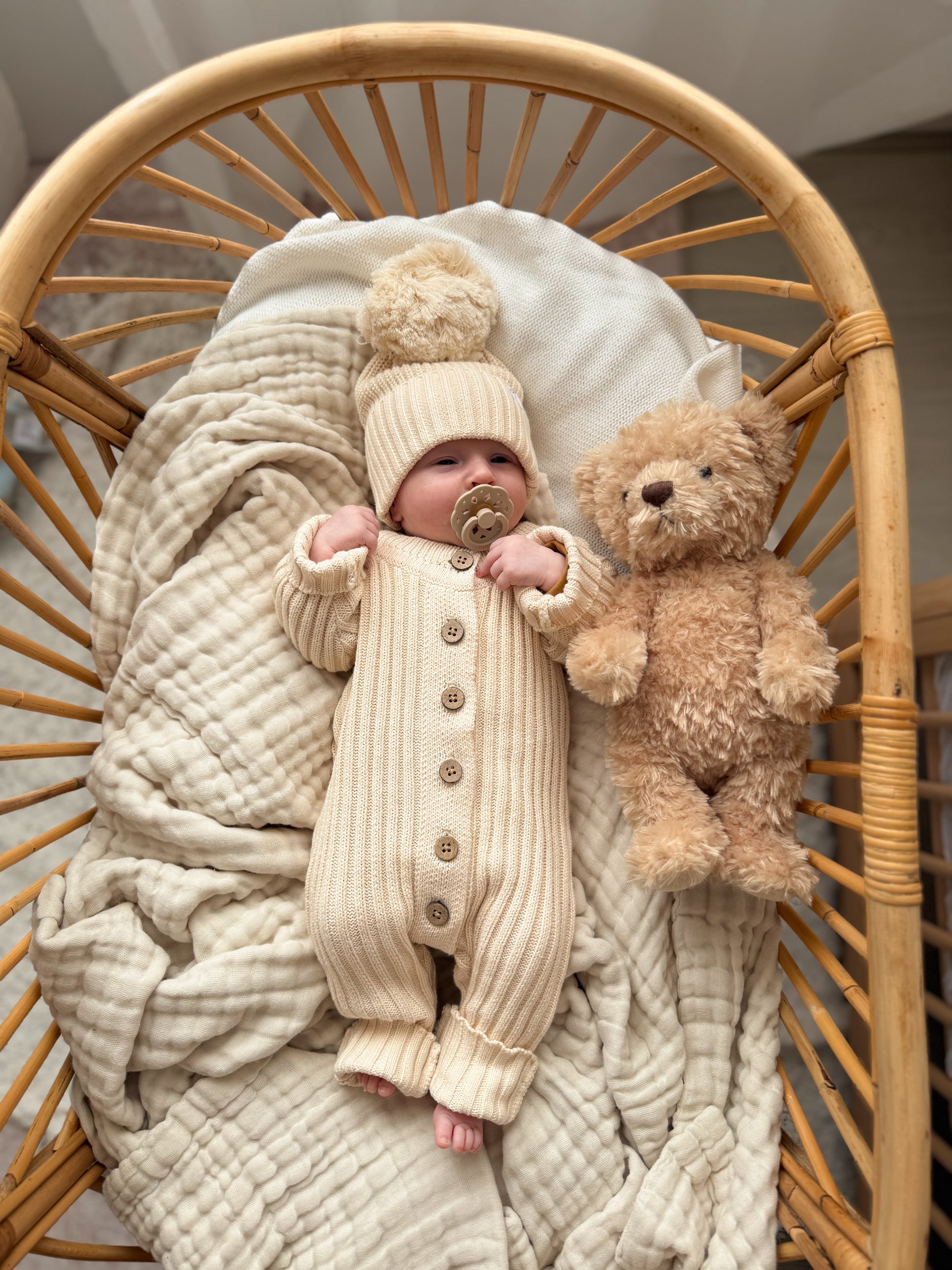 Thoughtfully designed for softness, comfort, and those fleeting newborn moments, now in a warm, earthy fawn tone.
